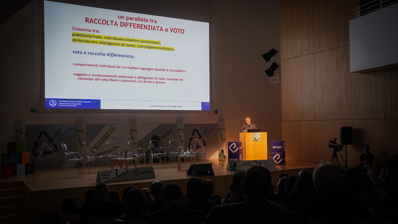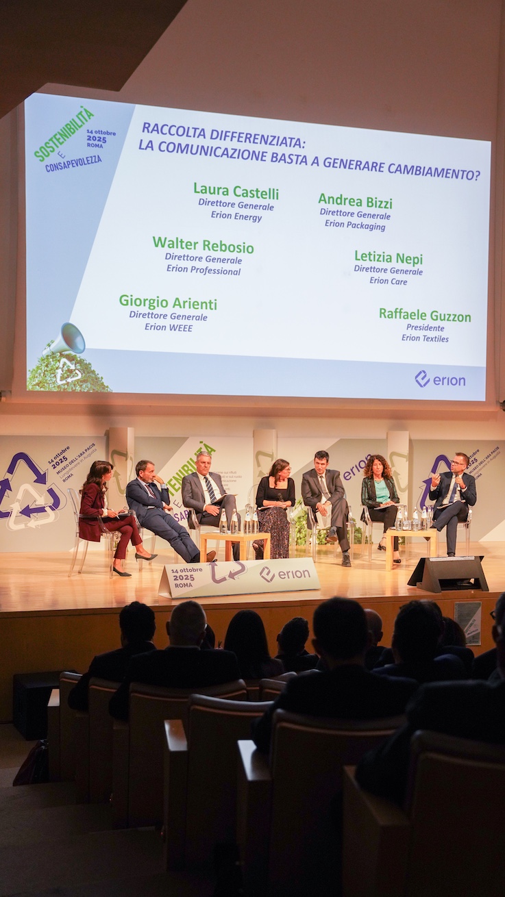 La giornata ha, poi, ospitato una tavola rotonda moderata da Serena Giacomin, Fisica, Meteorologa e Direttrice Scientifica di Italian Climate Network, alla quale hanno preso parte Giorgio Arienti, Direttore Generale di Erion WEEE; Walter Rebosio, Direttore Generale di Erion Professional; Laura Castelli, Direttore Generale di Erion Energy; Andrea Bizzi, Direttore Generale di Erion Packaging, Letizia Nepi, Direttore Generale di Erion Care; Raffaele Guzzon, Presidente di Erion Textiles.