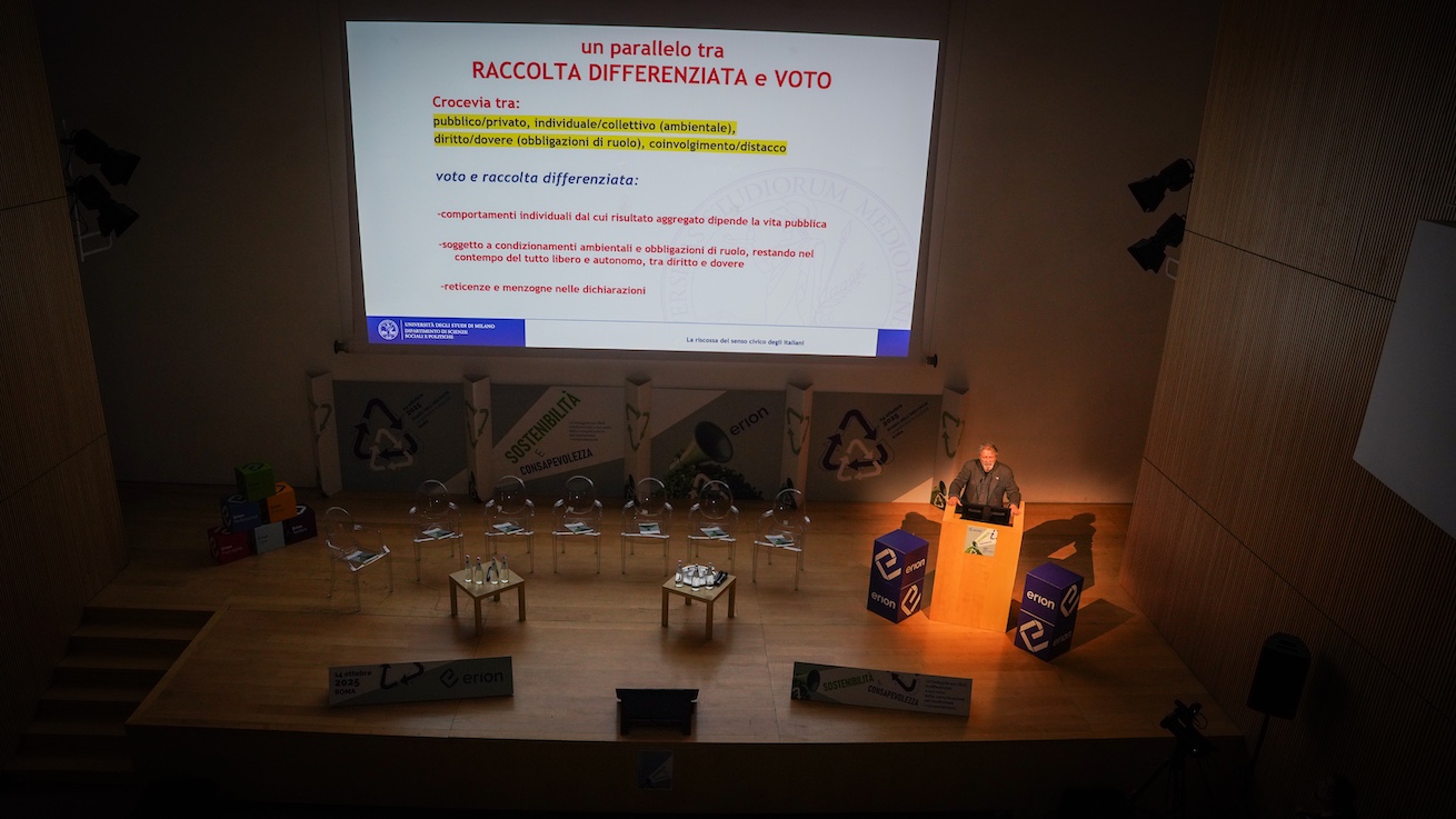 L’evento, introdotto dai saluti di benvenuto di Andrea Fluttero, Presidente di Erion Compliance Organization, ha ospitato gli interventi di Giulia Di Mari, SDI Team di Erion; Nando Pagnoncelli, Sondaggista e Presidente di Ipsos Doxa Italia; Paolo Natale, Professore di Metodologia della Ricerca presso l’Università degli Studi di Milano; Massimiliano Dona, Avvocato e Presidente di Consumatori.it